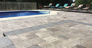 This three-piece paver system is ideal for many applications. Paver driveways, walkways, and patios are all great applications for pavers. This style of paver can be laid in random patterns. These pavers are strong and durable for residential as well as commercial use. Block Size: 6 x 9 & 6 x 6 & 3 x 6 all 2 3/8″ thick, .75 sq. ft. per set. Pallet Information: 21 lbs. per set, 3480 lbs. per pallet, 128 sq. ft. per pallet. Available in: Old Chicago, Oak Blend, Baltic Cream