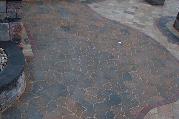 Rugged Barcelos is a three-piece paver system that has a textured surface to create the look and feel of old cobble streets. Not only do they have a more rustic look, but they are larger than most pavers. Try mixing Rugged Barcelos pavers and Canterbury Hill pavers together for a textured option that compliments. Block Size: 9 x 9 & 9 x 13 ½ & 9 x 4.5 all 3 1/8 thick. 1.70 sq. ft. per set Pallet Information: 60 lbs. per set, 3320 lbs. per pallet, 90 sq. ft. per pallet. Available In: Old Chicago, Oak Blend, Baltic Blend